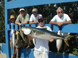 Dear friends, another year of fabulous fishing for white seabass, fabulous in quantiy and in size. We have had catches this year of up to 76 pounds and counts of up to 40 white seabass in one day averaging from 18-55 pounds. The favorite areas are north up to Punta Colonet covering the Isla san Quintin, San Ramon and Costa Brava, South down to San Geronimo travelling past Arrollo Hondo, La Pinta and El Rosario. The biggest catch was a 76 pound white seabass inside the bay where we all stop and catch our bait going out. Yellows have been plentiful up to 26 pounds, Tuna and albacore have been elusive but compinstating for it, is the catching of Dorado and good amounts of Halibut.